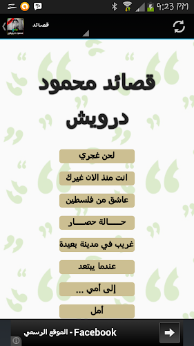Analýza A Revize Aplikací Pro Android: من روائع محمود درويش 2018, Vyvinuté Společností oneAppz. Uvedeno V Kategorii Knihy A Referenční Materiály. Aktuální Verze Je 1.0, Aktualizována Na 01/01/2015 . Podle Recenzí Uživatelů Na Google Play: من روائع محمود درويش 2018. Dosaženo Více Než 28 Tisíc Instalací. من روائع محمود درويش 2018 Má V Současné Době Recenze 118, Průměrné Hodnocení 4.3 Hvězd