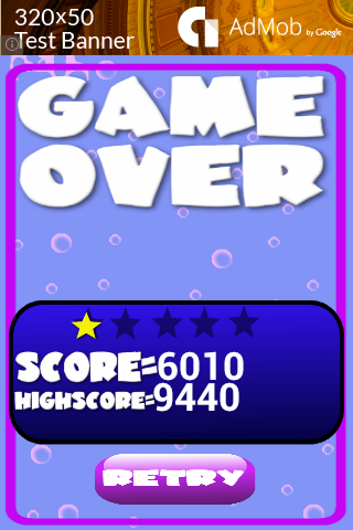 *když se bublina chystá narazit na okraj, klepněte rychle mezi bublinu a okraj, abyste ji odrazili od okraje a uložili ji.