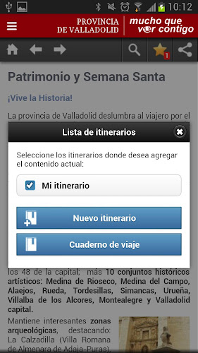 všechny turistické informace o provincii valladolid na vašem mano.incluye informace nejblíže vaší poloze zdroje cestovního ruchu bez připojení k internetu, nadcházející události v provincii valladolid, zápisník organizování vašich cestovních itinerářů,navigační portál cestovního ruchu v provincii valladolid a nahrání fotografie provincie na portál.características - informace o nadcházejících událostech, {# zdroje cestovního ruchu k vaší poloze} zdroj informací o vaší poloze: systém k nalezení a maximální vzdálenosti, to vše bez připojení k internetu.