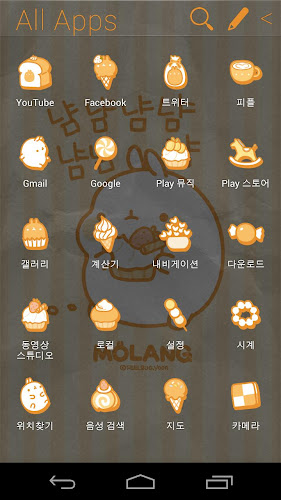 Molang miluje žlutou, protože mnoho thigs Molang Loves je žluté, jako je chléb, med, cookey a Molangovo oblíbené jídlo, kobliha.dekolate telefon s krásnou koblihou žluto. Stisknutím a podržením prázdného prostoru na domovské obrazovce vyberte svůj motiv nebo stiskněte nabídku pro nastavení motivu