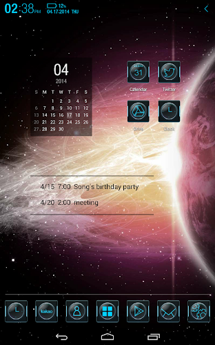 - zjednodušené widgety: hodiny, kalendář poznámek, kontakty, nastavení a vyhledávací lišta
