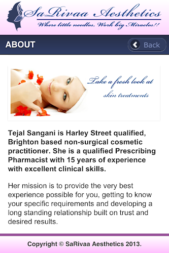 Analýza A Revize Aplikací Pro Android: Skin Care - SaRivaa Aesthetics, Vyvinuté Společností Dotsquares. Uvedeno V Kategorii Zdraví A Fitness. Aktuální Verze Je 1.0.0, Aktualizována Na 16/05/2013 . Podle Recenzí Uživatelů Na Google Play: Skin Care - SaRivaa Aesthetics. Dosaženo Více Než 10 Instalací. Skin Care - SaRivaa Aesthetics Má V Současné Době Recenze 1, Průměrné Hodnocení 5.0 Hvězd