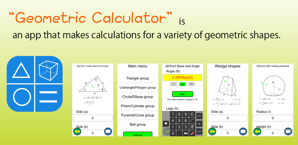 Geometrická kalkulačka je aplikace, která vytváří výpočty pro různé geometrické tvaryNeposkytuje funkčnost standardního kalkulačky. vzorec pro vypracování výsledku.