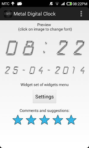 Analýza A Revize Aplikací Pro Android: Metal Digital Clock, Vyvinuté Společností EasyDevTools. Uvedeno V Kategorii Nástroje. Aktuální Verze Je 1.0.1, Aktualizována Na 08/01/2015 . Podle Recenzí Uživatelů Na Google Play: Metal Digital Clock. Dosaženo Více Než 50 Tisíc Instalací. Metal Digital Clock Má V Současné Době Recenze 900, Průměrné Hodnocení 4.1 Hvězd