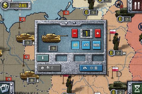 전투 모드는 4개 국가를 주요 라인(독일,영국,프랑스,소련)으로 선택하여 16개 전투 게임을 진행할수 있습니다.