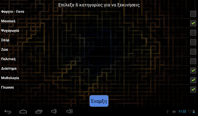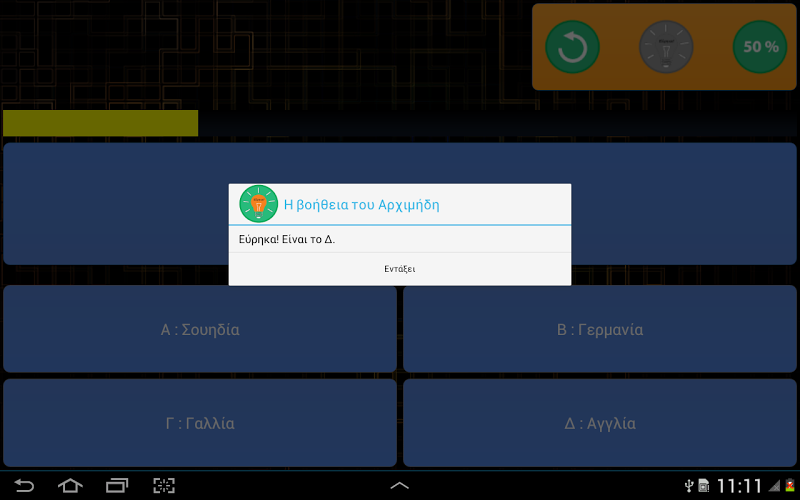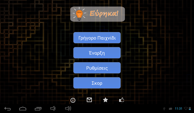 „Eureka!“ je kvíz, kde na otázky musí být zodpovězeny kategorií. V současné době je v řečtině k dispozici více než 2,800 otázek!Otázky jsou často aktualizovány! V současné době jsou otázky rozděleny do následujících kategorií: