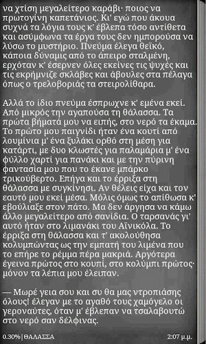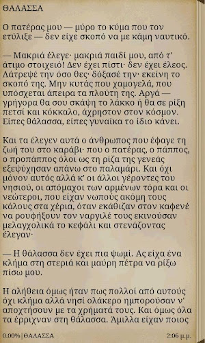 Zavřete knihu a jen ji vraťte, kde si meinei- procenta% dokončení vivliou.- hodiny nezapomeňte na čtení režimu knihy a nychtas- upravte barvu písma pro uvolněnější Diavasma.- Automatické přizpůsobení.