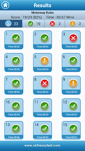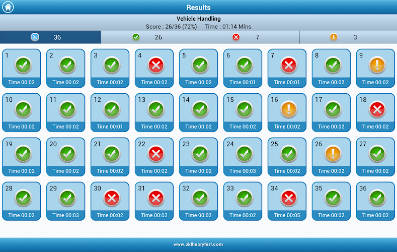 Souhrn praktického testu je uveden na konci každého testu. Ukazuje vám čas, který jste vzali, skóre, na které otázky jste odpověděli správně a kde jste se mýlili.