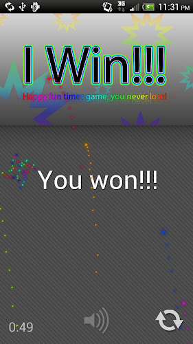 Vždy vyhrajete! Vyhrajte, kdykoli chcete! Je to tak zábavné! Zábavná hra pro Android!Existuje spousta úrovní a úspěchů a existují podváděcí kódy a všechno. Pěkné barvy, hladké animace, úžasné zvukové efekty, intuitivní ovládací prvky ...