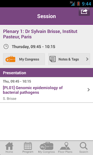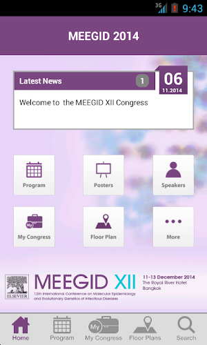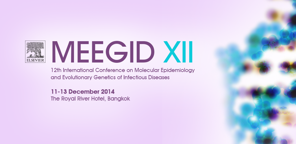 Konference o 12. mezinárodním setkání Molekulární epidemiologie a evoluční genetika infekčních chorob (Meegid XII). Bangkok, Thajsko dne 11.- 13. prosince 2014. Setkání bude organizováno Elsevierem a bude zahrnovat 15 plílenových přednášek, 24 dvouhodinových specializovaných sympozií a několik plakátových sezení. H5N1, SARS, AIDS, tuberkulóza, malárie, leishmaniasy, skot a patogeny plodin. Plenární přednášky a sympozia se budou také zabývat příčnými tématy, jako je populační genetika, evoluce, druhové koncepty, bioinformatika, analýza sekvenování celého genomu a mapování fylogenetických znaků. Kongres je otevřen návrhům konferencí a sympoziakomunikace o genetice, genomice, proteomice, biologii populace, matematické modelování a bioinformatiky jsou vítány. Mohou se zabývat hostitelem, patogenem nebo vektorem v případě onemocnění přenášených vektorem. Papíry zvažující hostitele + patogen nebo patogen + vektor (koevoluce) jsou silně podporovány. Všechny patogeny jsou v rozsahu Meegid, včetně virů, parazitických protozoa, helmintů, plísňových organismů a prionů. Lze zvážit všechny infekční modely, včetně modelů veterinárního nebo agronomického významu. Před prvním použitím budete muset stáhnout nejnovější konferenční data a poté můžete aplikaci použít offline.