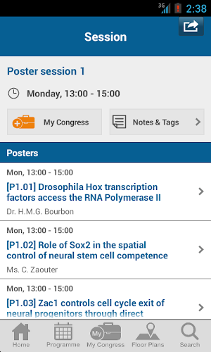 Pomocí nové aplikace Elseviera můžete procházet vědecký program podle dnů, tématu nebo řečníka, vytvořit si vlastní osobní program, najít pokoje a vystavovatelů stojí na půdorychu a další. Před prvním použitím budete muset stáhnout nejnovější konferenční data a poté můžete aplikaci použít offline.