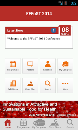 Vědecký obsah konference posílí roli potravy v řadě hlavních společenských výzev, jako je veřejné zdraví, stárnoucí populace, globalizace, změna klimatu a dodávka energie, protože hledáme inovační příležitosti na rozhraní vědeckých disciplín. Švédsko má silný přední výzkum a významné mezinárodní sítě v důležitých vědeckých oblastech (potravinářské a zemědělské vědy a inženýrství a spojenecké oblasti výživy, zdraví, udržitelného rozvoje, logistiky a balení). Kromě toho je spolupráce s konference o potravinářské továrně ideální příležitostí k rozšíření témat tak, aby zahrnovala inovativní řešení pro budoucí výrobu potravin.Pomocí nové aplikace Elseviers můžete procházet vědecký program podle dnů, tématu nebo řečníku, vytvořit si vlastní osobní program, vyhledat místnosti a vystavovací stojan na půdorysy a více. Před prvním použitím budete muset stáhnout nejnovější konferenční data a poté můžete aplikaci použít offline.