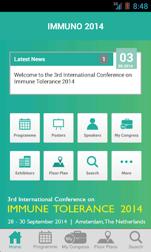 Mobilní aplikace pro Immuno 2014, 28.-30. září, Amsterdam, Nizozemsko.