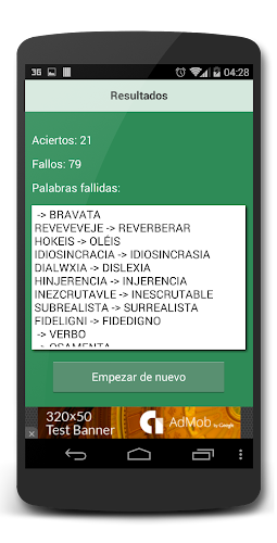 En caso de fallo, podrás comparar tus errores y ver la definición de las palabras.