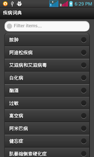 Slovník nemoci je velmi užitečný pro pochopení nemoci, důležitých informací, jejich vedlejších účinků, všeho slovníku, jak to funguje. K dispozici jsou také možnosti vyhledávání.