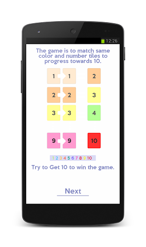 Je to téměř perfektní logická hra pro Android! Prozkoumejte hlubokou výzvu pro vaši mysl!# the game is to match same color tiles to progress towards 10