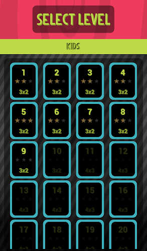 Dětská paměťová hra je paměťová hra pro zlepšení paměťových dovedností pro děti. Jedná se o interaktivní, poutavou a zábavnou hru pro děti všech věkových skupin.Objekt hry pro paměť dětí je převrácení párů karet. je to snadné. Klepnutím převrátíte dvě karty. Připojte pár a oni zůstanou. Tato hra je pro děti zvláštní, má čtyři vtipné typy karet, ovoce, vlajek, zvířata a karikatury. tvrdý. Dospělí lidé by mohli hrát příliš vyšší úrovně.