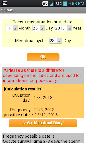 ※ Použijte pro reference, ovulaci, těhotenství může být v závislosti na prognóze dámského dne tak odlišné.
