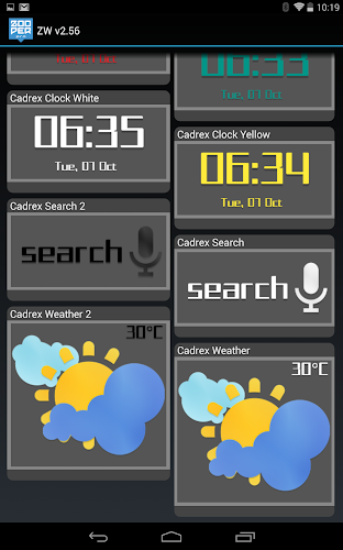Widgety Cadrex obsahují 37 odpovídající skiny Zooper Pro, které lze použít s balíčkem ikon Cadrex, který je k dispozici zde: