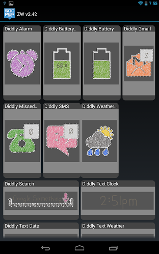 Widgety Diddly obsahují 12 odpovídajících skinů Zooper Pro, které lze použít s balíčkem diddly icon, který je k dispozici zde: