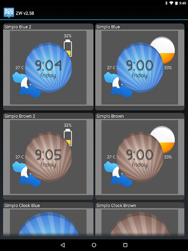 Simplo Widgets obsahuje 24 odpovídajících kůží Zooper Pro, které lze použít s balíčkem Simplo Icon, který je k dispozici zde: