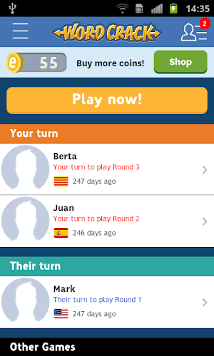 Word Crack je asynchronní a křížově platforma. Hrajte proti svým přátelům na Facebooku nebo proti náhodným uživatelům jakékoli platformy. Kromě toho existují neomezené simultánní hry!