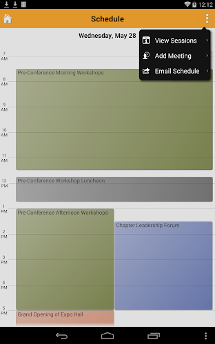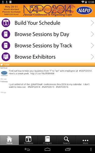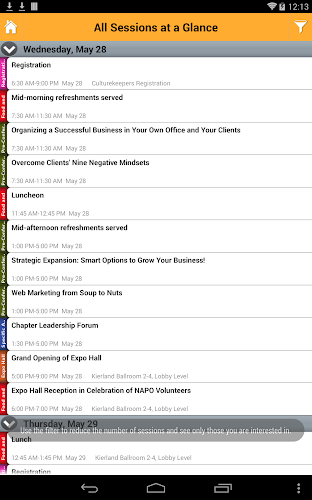 • Program: Procházejte celý program události pro vytvoření osobního rozvrhu, záložek nebo reproduktorů nebo přístupových relací, jak je k dispozici.