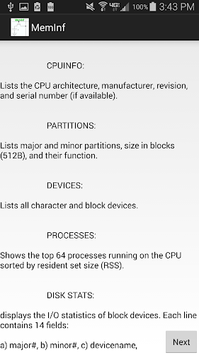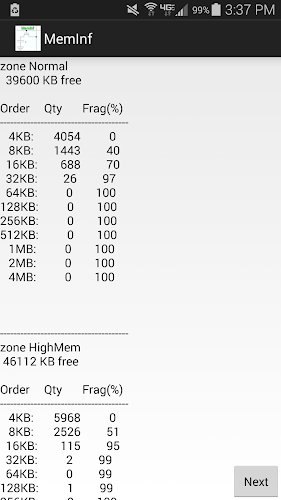Vrtávejte hluboko do labrynth virtuální paměti, abyste viděli, jak se v rámci vašeho mobilního zařízení využívají komponenty hardwaru RAM, úložiště a další výkonnost.. Podívejte se, jak je fyzická paměť rozdělena, kolik zůstává svobodná a její úroveň fragmentace. Zkontrolujte další stav, jako jsou systémové hodiny, I/OS, oddíly zařízení, stav zařízení, přiřazení přerušení, plus podpora jádra pro bloková zařízení, šifru, hash a komprese. nevyžaduje kořen. nevyžaduje připojení USB nebo síťové. Počáteční vydání zahrnuje pouze podporu základních parametrů. Předpokládaná: Systematická interpretace výsledků poskytnutých touto aplikací vyžaduje zásadní pochopení principů obklopujících mangofer paměti.