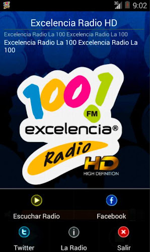 EXCELENCIA RADIO LA 100! presenta la aplicación oficial Gratis para dispositivos Android. La Aplicación funciona tanto en móviles como en tablets con sistema operativo Android.Es recomendable usar en wifi para escuchar de forma ilimitada o...
