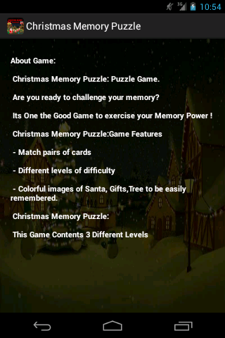 Analýza A Revize Aplikací Pro Android: Christmas Memory Puzzle, Vyvinuté Společností Extended Web AppTech. Uvedeno V Kategorii Karetní. Aktuální Verze Je 1.1, Aktualizována Na 25/12/2013 . Podle Recenzí Uživatelů Na Google Play: Christmas Memory Puzzle. Dosaženo Více Než 100 Instalací. Christmas Memory Puzzle Má V Současné Době Recenze 3, Průměrné Hodnocení 3.3 Hvězd