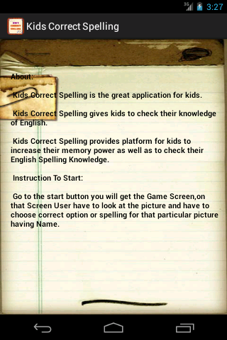 Kids Correct Spelling is the great application for kids.Kids Correct Spelling gives kids to check their knowledge of English.