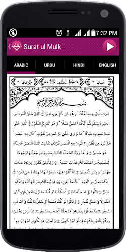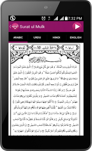 ★ Kompletní Surat ul Mulk s překladem Kanzul Iman ve třech (3) jazycích Urdu, Hindština a Angličtina.Kompatibilní se všemi většinou zařízení Android od Gingerbread (2.3) po Lollipop (5.1).