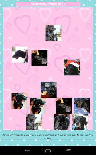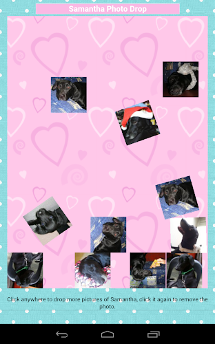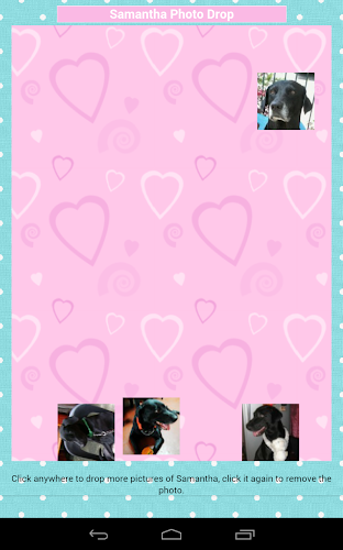 Jedná se o jednoduchou aplikaci Mini Game, která zobrazuje obrázky našeho pes Labrador Pet ps jménem Samantha.Hra zahrnuje fyziku a gravitaci jako náhodné obrázky jejích kapek na stránce.