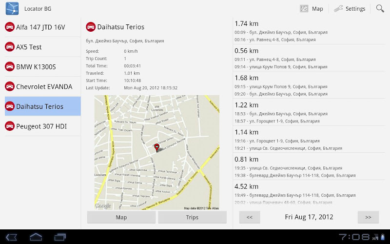 Android klient on-line sledovací platformy lokátoru. Současné funkce zahrnují:* Viz seznam vozidel ve vaší flotile.