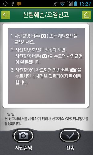 Jako obecné veřejné odlesňování (vyhýbáno se) zpravodajské službě, pro kterou je lesní služba poskytnuta, pokud je převedena na snížení obrázku, která je zaslána k nahlášení informací (fotografie a informace o poloze) zástupci každé obce (město, kraj) a okamžitě předloží, zastupuje zprávu City Telefonvolá podle čísel (1899-7350), služba, která vám okamžitě hlásí vaše místní zástupce.