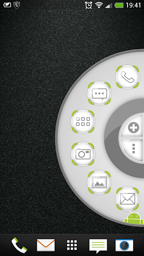 Kolo Launcher White téma.https://play.google.com/store/apps/details?id=com.fossor.wheellauncher