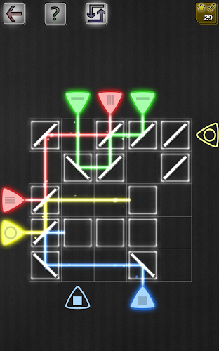 V této logické puzzle hra, umístěte zrcadla nasměrovat lasery k řádnému východu!Hádej orientaci zrcadel pouze s logikou. Žádné náhodné pohyby.