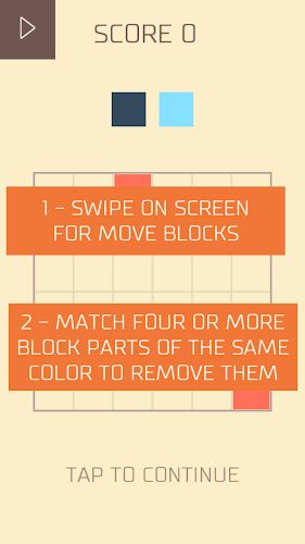 Remove color blocks from the field and keep score as long as possible.Match four or more block parts of the same color to remove them