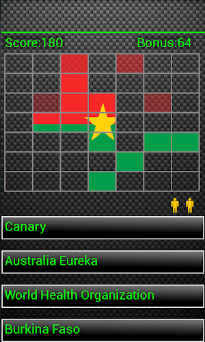 tento kvíz obsahuje stovky vlajek, které můžete identifikovat, nejen vlajky zemí, ale také vlajky států a okresů, historické vlajky, regionální vlajky, námořní vlajky, vlajky měst atd.vlajky se pomalu odhalují a vy musíte uhodnout správnou vlajku ze čtyř uvedených možností, za správné rychlé odhady se udělují další body.