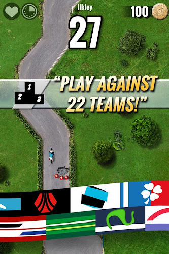 rozhodněte se hrát pro jeden z 22 konkurenčních týmů z celého světa. Hrajte v nejlepším případě, abyste pomohli vaší zemi zvednout světový cyklistický pohár na turné po Yorkshire a Francii. Jednoduše přesuňte kolo posunutím spodní části obrazovky! Master Perfektní načasování, abyste získali nejvyšší možné skóre a pomohli vašemu týmu vítězství.