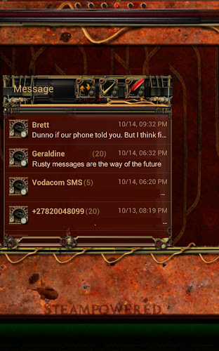 Analýza A Revize Aplikací Pro Android: Steampunk GO Message Theme, Vyvinuté Společností mindseed design. Uvedeno V Kategorii Personalizace. Aktuální Verze Je 1.0, Aktualizována Na 15/10/2012 . Podle Recenzí Uživatelů Na Google Play: Steampunk GO Message Theme. Dosaženo Více Než 45 Tisíc Instalací. Steampunk GO Message Theme Má V Současné Době Recenze 1, Průměrné Hodnocení 5.0 Hvězd