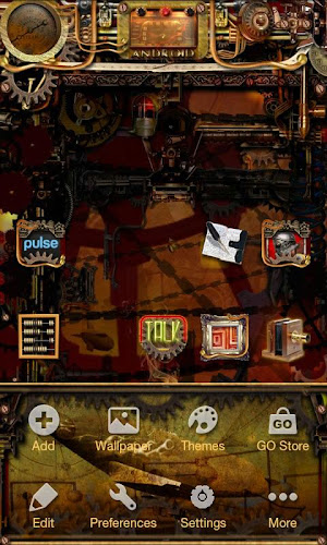 Gears, Levers, Pulleys & Steam drive this Antique Steampunk Go Launcher Ex Theme