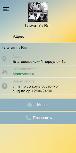 Lawson’s – шотландский бар.Исторически сложилось, что Шотландия, край бездонных озер и живописных холмов, стала синонимом свободолюбия и взрывного характера. В честь настоящего шотландца – Вильяма Лоусона (William Lawson’s) назван, рожденный в 1849 году, популярный купаж солодового виски, а в 2012 году – бар Lawson’s. Cкотч в чистом виде, в оригинальных коктейлях и даже собственного производства, – в виде фирменных настоек, – наши дела говорят больше слов. Отвязные вечеринки с неутомимыми DJ’s по выходным, трансляции актуальных спортивных событий в сопровождении «живых комментаторов» – брутальности и темперамента шотландцам не занимать. Собираясь в Lawson’s, готовьтесь к учащенному сердцебиению и эмоциональному подъему – на фоне флегматичных московских заведений, круглосуточное веселье в настоящем шотландском баре грозит перерасти в адреналиновую зависимость.