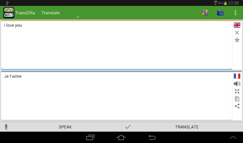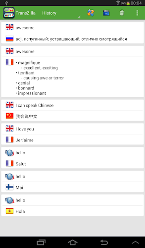 transzilla voice translator je bezplatná aplikace, která podporuje překlad textu ve více než 70 jazycích.Překládejte hlas, abyste mohli konverzovat s cizími lidmi a klást otázky v jiných jazycích. cestovat po celém světě a mluvit bez znalosti jazyka, pouze s touto překladatelskou aplikací v kapse!