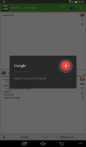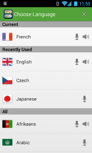 Chcete-li používat překladač s hlasem, musíte mít nainstalované hlasové vyhledávání a rozpoznávání řeči Google. toto jsou motory používané k rozpoznání vašeho hlasu (nastavení > jazyk a vstup > hlasové vyhledávání > jazyk)
