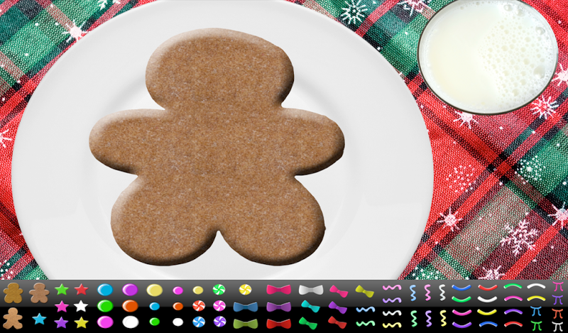 A very simple way for kids to create their own gingerbread man (or woman) this holiday season.Kids will love to decorate their very own gingerbread man using OVER 70 DIFFERENT ITEMS. Just drag and drop the items at the desired spot to create 1000's of different gingerbread men.