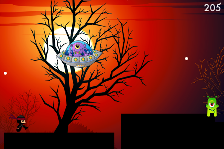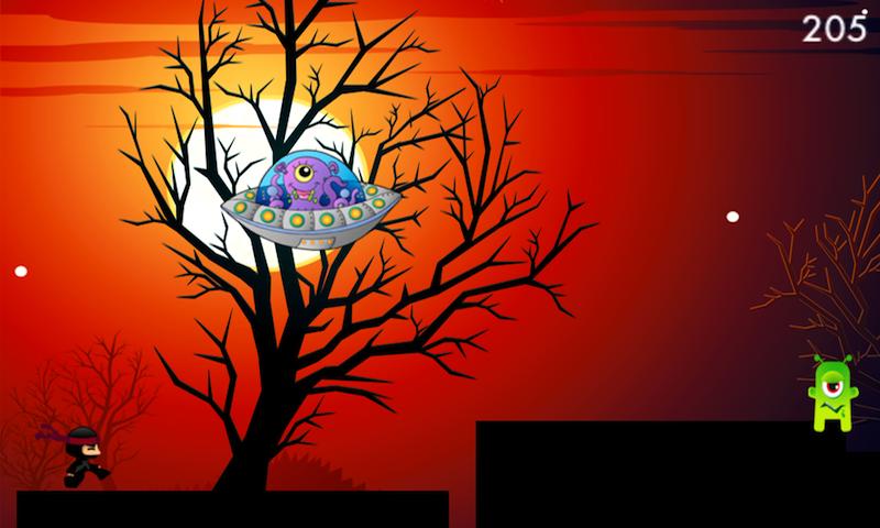 utíkej a přeskakuj přes plošiny tak daleko, jak jen můžeš, ale dej si pozor na ufo, která shodí mimozemšťany, kteří se tě pokusí srazit do záhuby!buďte ninjou hrdinou a dostaňte se tak daleko od mimozemského vetřelce, jak jen můžete!