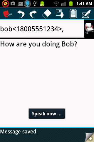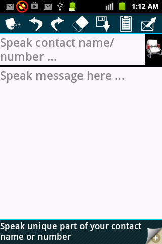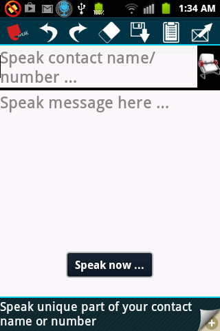 Hands Free Speech SMS nebo SMS (GSPEECHSMS): Open. mluvit. Odeslat. Tato aplikace poskytuje pohodlný a ruční způsob, jak komponovat a odesílat textovou zprávu nebo SMS pouhým mluvením. Tato aplikace je navržena tak, aby poskytovala...