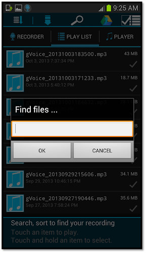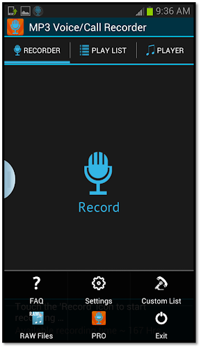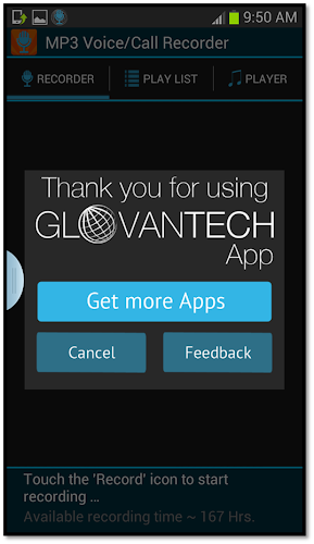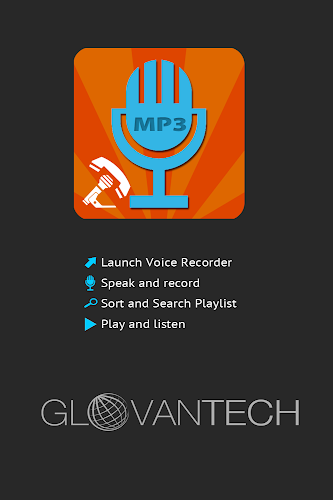 ★ Alternativní spuštění možnosti: Otevřete ikonu hlasového rekordéru MP3 a dotkněte se ikona záznamu karty Recorder Další informace naleznete na stránce FAQ: Http://glovanTech.com/faq/guniversalRecorder_plus.html