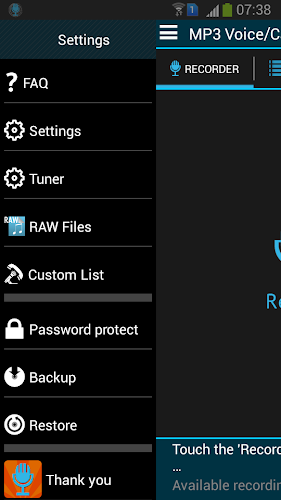 „Aplikace Smart Call Recorder MP3“ je navržena tak, aby vám poskytla nejjednodušší a nejjednodušší zvukový, hlasový a volací rekordér. Tuto aplikaci použijte k nahrávání schůzek, telefonních hovorů, konferencí, rozhovorů, tříd, přednášek nebo cokoli jiného, co byste mohli potřebovat přímo do formátu MP3 tak dlouho, jak chcete. Tato aplikace může spustit/zastavit nahrávky na pozadí stisknutím „hlasitosti“ a poté „hlasitosti“ vašeho zařízení do 3 s. V zásadě splňuje všechny požadavky uživatele a mnohem více, což zaručuje zábavný, bez námahy a efektivní funkční výkon. Už nikdy nebudete potřebovat další aplikaci pro nahrávání hlasu.